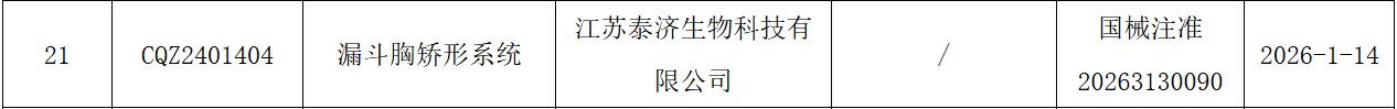 2026年1月14日,由江苏泰济生物科技有限公司研发生产的三类医疗器械——“漏斗胸矫形系统”获批上市!