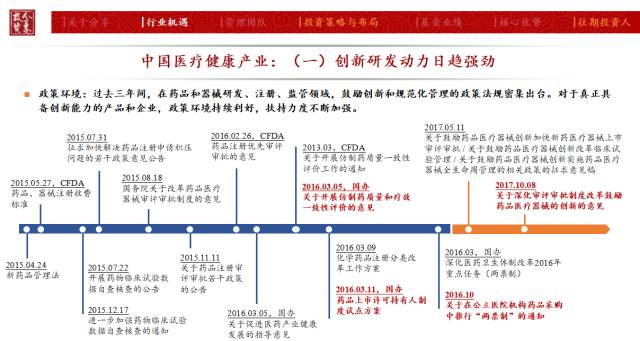 中国新药研发进入创新和国际化的新时代 近年来,我国新药研发环境显著改善,创新和国际化已成为中国新药研发主旋律,从天时、地利、人和三方面得以体现: 天时:国家鼓励创新药研发 国家对于创新医药项目的资金资助与扶持:国家“863计划”、“973计划”、“自然科学基金”都将生物医药作为最优先发展的项目;战略性新兴产业专项资金从2011年开始一年申报一次,重点扶持生物技术药物创新; 利好医药产业发展的政策法规落地实施:因为我国缺乏创新药研发和审批方面的积累,新药审评政策不明朗、审批流程慢被新药研发企业广泛诟病。但是在2015之后,国家出台了一系列利好创新药研发的政策法规,大大改善了中国创新药的研发和审批流程。从2015年8月“国务院关于改革药品医疗器械审评审批制度的意见,国发〔2015〕44号”这一影响未来几年行业走向的意见发布后,国家食品药品监督局立刻制定时间表,一系列政策快速落地,可以看出在以提高药物质量为目标,鼓励药物创新为导向的国家大政方针下,国家食品药品监督管理局执行政策的效率和贯彻到底的信心。因此,2015年也被称为中国创新药发展的元年。 点击查看高清图片 ↓↓↓ 政策简评 1、仿制药一致性评价的各种指导细则的制定,彻底改变了国内药企的格局,决定了以技术说话,以质量取胜的仿制药研发格局,促使企业优胜劣汰,主动转型; 2、临床试验自查审查带来的“722惨案”从源头上肃清了关乎药物质量安全的隐患,临床机构重新洗牌,也是提升临床机构质量的重要契机; 3、化学药品注册分类的重大改变,对新药的定义从“中国新”提升至“全球新”,标志着真正具有原创能力的企业迎来了重大机遇; 4、上市许可人制度,药品优先审批审批,简政放权取消一系列认证,临床试验备案制,简化审批流程等一系列政策制度,则给致力于新药研发的企业打了一针强心剂,真正体现了国家以临床需求为导向,重视创新,鼓励真正具有研发实力的创新性企业的态度; 5、支持国际多中心临床试验,加入ICH,也同样促使外企创新药快速打入国内市场,也给中国药企带上金箍圈,促使企业的新药研发和上市需要保质提速,具有全球视野观。 从创新药项目的资金支持到利好政策的落地实施都为中国的创新药研发创造了利好的天时条件。总体来看,这些政策的出发点都是与国际接轨,鼓励创新。 地利:中国成为亚太地区医药研发热土 从全球制药大公司在中国建立研发中心,到大量医药海归人员回国创业,为中国医药的创新环境带来了新的血液,无论从研发理念还是人才的培养,都将为中国的新药研发带来巨大的促进作用; 与此同时,在国家政策及中国市场强大发展潜力的双重推动下,国内药谷热持续升温,目前我国各类药谷数量不下百个,经国家有关部门或地方政府批准的药谷不下50家。华西有科技部首个批准的“国家级中药现代化科技产业基地”四川成都药谷;长三角有上海张江药谷,浙江杭州药谷、浙江兰溪药谷、江苏无锡药谷、江苏常州“三药”生产基地等;西部有“现代化高科技生物工程工业园”新疆天山药谷;华南有号称“南国药库”海口药谷;华北有北京亦庄药谷、中关村药谷、天津国际创新药谷;东北有吉林通化医药城等;其他地区有湖南浏阳生物医药工业园、深圳医药产业园区,广州国际生物岛等。目前,中国生物医药产业集群化分布进一步显现,已初步形成以长三角、环渤海为核心,珠三角、东北等中东部地区快速发展的产业空间格局。 人和:巨大的市场需求及高涨的药企研发热情 市场需求:2015年,中国超过日本,成为全球第二大医药市场,人口基数大,老龄化严重,远远未满足的临床需求,必将持续催生巨大的市场需求,而临床需求和市场需求是新药研发最直接的驱动力; 国内药企的创新理念及研发模式的转变:近年来,国内医药企业不惜重金从全球大制药公司引进经验丰富的医药人才担任公司高管,负责创新药研发,从国外引进新药项目丰富自己公司的新药产品管线,布局新药研发战略。从研发理念和项目先进性方面逐渐和国际接轨,而企业间的跨国合作近年来更是屡见报端。 模式 中国新药研发企业研发模式 2015年我国医药工业总产值已达到约2.7万亿元人民币,已超过日本,成为仅次于美国的全球第二大医药市场。在全球范围看,我国的医药企业一直是多而不强,以仿制为主,创新能力远远不足。 但是,近年来创新药的研发取得了较为喜人的进展,已有4个具有自主知识产权的1类新药上市,包括恒瑞的艾瑞昔布和阿帕替尼、浙江贝达的埃克替尼和深圳微芯的西达本胺;同时,1类新药(新靶点生物药及化学药)的IND申报数量也呈逐年递增的趋势。在此过程中,中国创新药企业的研发模式逐渐形成了三种模式的多样性发展。 由仿到创的1.0模式: 由大型仿制药企业向创新升级 这些企业由仿制药或原料药起家,通过自主研发或者并购的方式,升级转型为创新药企业,再到国际化,最终成为Big Pharma,国内的代表企业有恒瑞医药、康弘药业、绿叶制药、复星医药等。此类企业的优势在于有充足的资本作为研发投入,建立较为全面的自有新药研发平台,同时具有成熟的市场销售渠道,为新药研发及以后上市提供了资金和销售保障,加之多年的累积,最终走向跨国药企的机会大大增加,属于重资产型新药研发模式。 生而创新的2.0模式: 研发